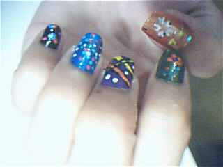 面積比較大的大拇指,順著顏色交線處貼上兩朵水鑽小花,在空處加個小愛心,增添華麗感